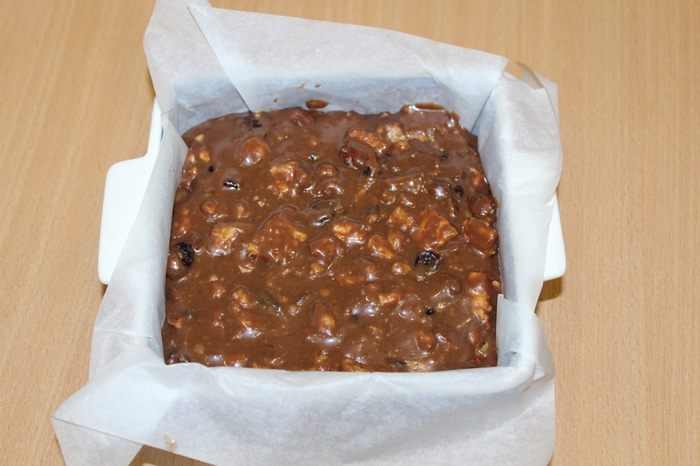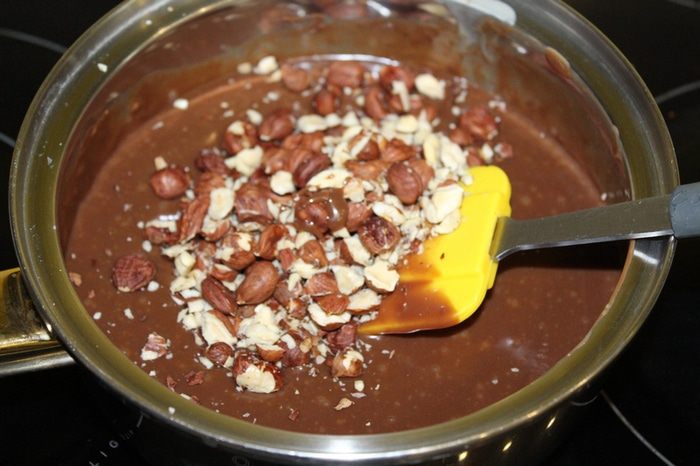 К шоколадной массе добавьте орехи.