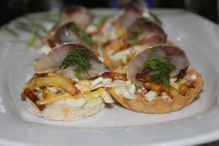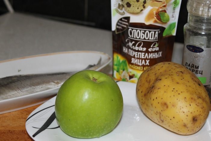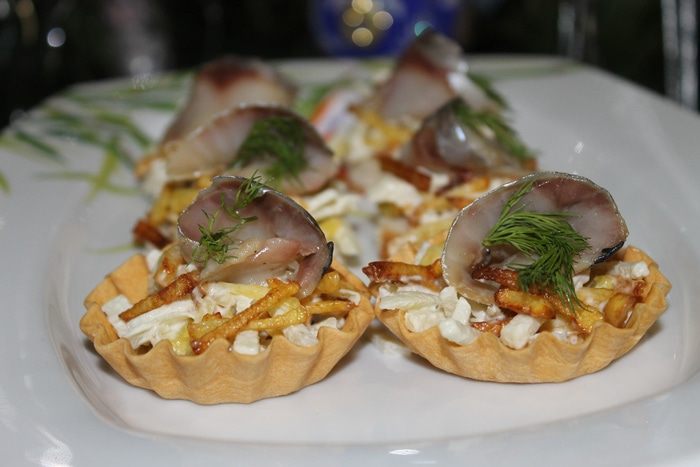 Царица морей — сельдь, всегда по достоинству занимает почетное место на нашем праздничном столе. И как только мы ее не преподносим, в салатах, просто нарезанная с маринованным лучком, а я вам хочу предложить вкусную и легкую закуску на новогодний стол из сельди. Замечательным дополнением к сельди будет салат заправленный постным майонезмым соусом ТМ «Слобода» или любым другим по вашему вкусу.