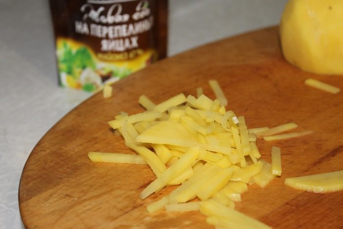 Картофель очистите и нарежьте тонкой соломкой.