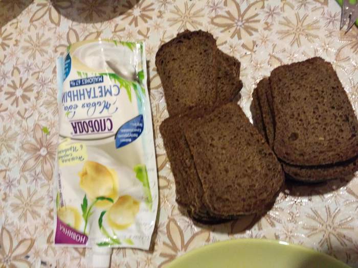 Хлеб нарезать толщиной в 5 — 6 мм.