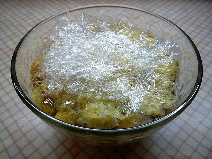 Заворачиваем пленкой и убираем на два часа в холодильник (я убрала на ночь).