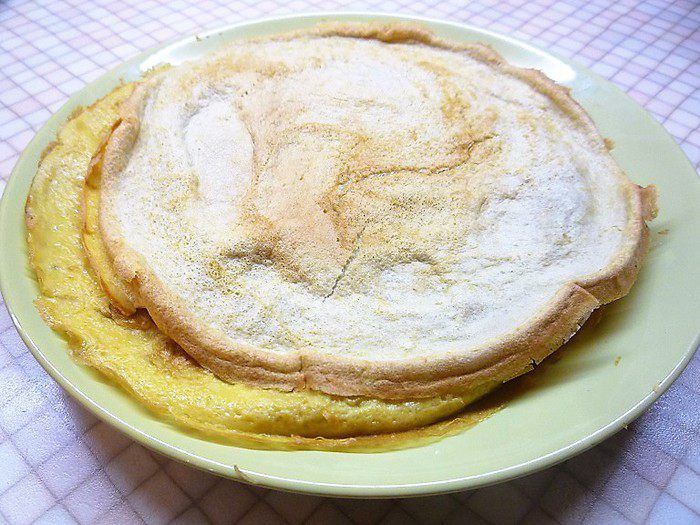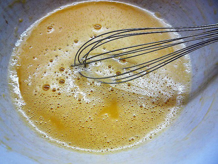 Сковороду смазываем оливковым маслом и жарим два яичных омлета.