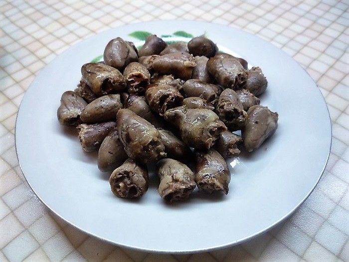Куриные сердечки отвариваем в подсоленной воде в течении 30 минут.
