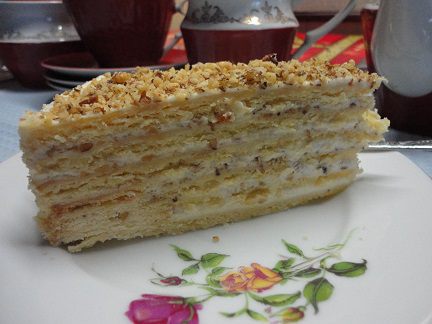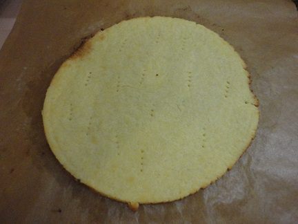 Выпекаем при температуре 200°С до светло-золотистого цвета (5 — 10 минут), все зависит от вашей духовки. Я оставляла коржи остывать прямо на бумаге. Они получились очень рассыпчатые, хрупкие. Пара даже разломились, но я спрятала их в середину пирога. Все знают такую хитрость.