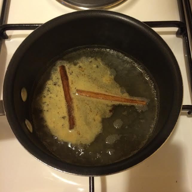 В миске смешать специи и воду. Поставить на огонь, дать закипеть и снять с огня. Дать настояться 15 минут и процедить.