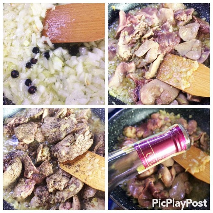 Параллельно я тушила куриное филе с луком и морковью в одной сковороде. А в другой — шампиньоны, нарезанные кубиком, с луком. Перчим и солим все по своему вкусу.