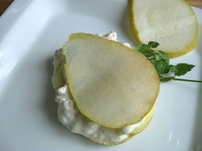 Груши и яблоко нарезать тонкими кольцами (семенную часть удалить).