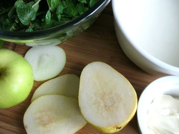 Приготовить все необходимое. Груши и яблоко помыть. Выдавить лимонный сок в миску.