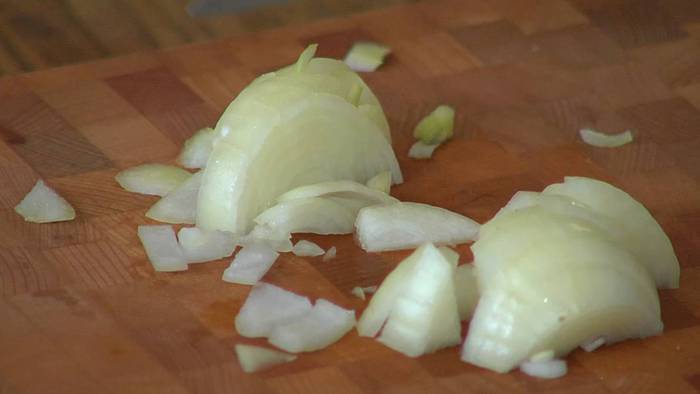 Лук и чеснок почистить и мелко порезать.
