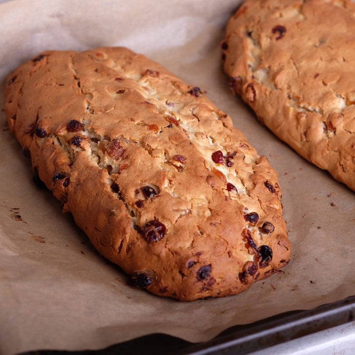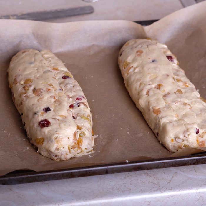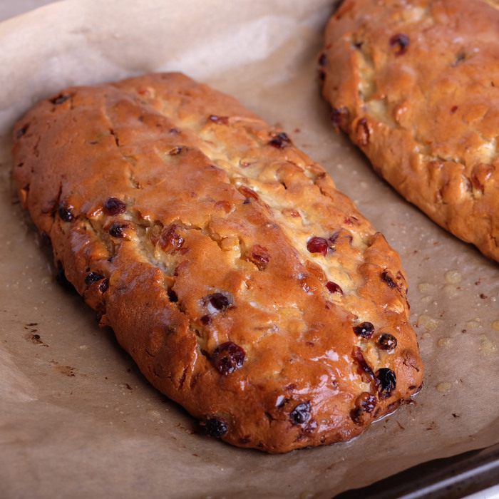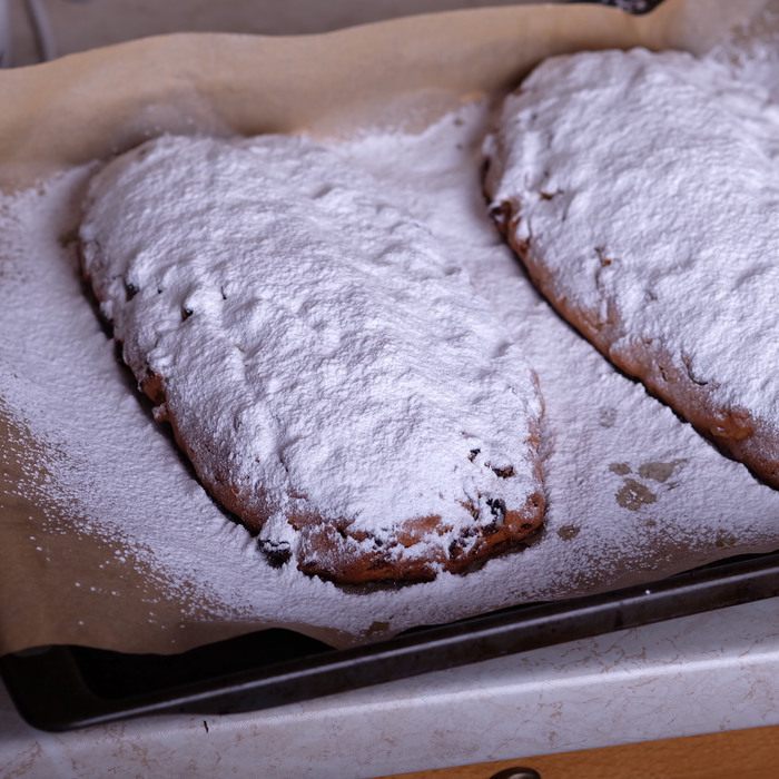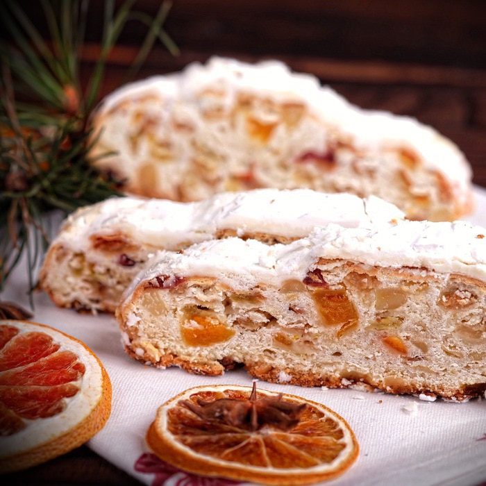 Когда штоллены остынут, завернуть их в фольгу и оставить в прохладном месте на срок 1 — 7 недель. Штоллены должны созреть. Я для фото, конечно, не стала ждать и разрезала штоллен в день выпечки. Но уже даже на следующий день вкус совершенно преобразился, стал более насыщенным, необыкновенно вкусным! Поэтому советую не игнорировать время «созревания» и выдержать штоллены хотя бы неделю.