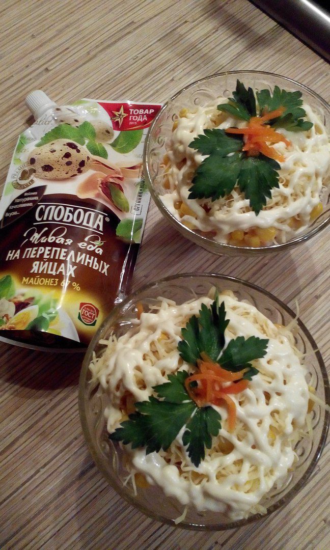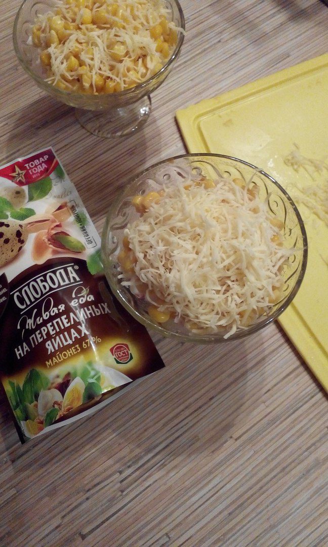 Далее идет слой кукурузы и слой натертого сыра.