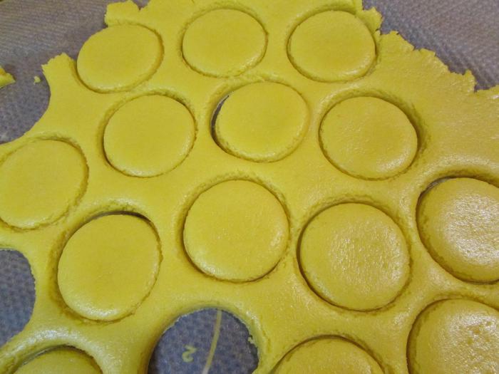 Вырезать формой для печенья небольшие кружочки.
