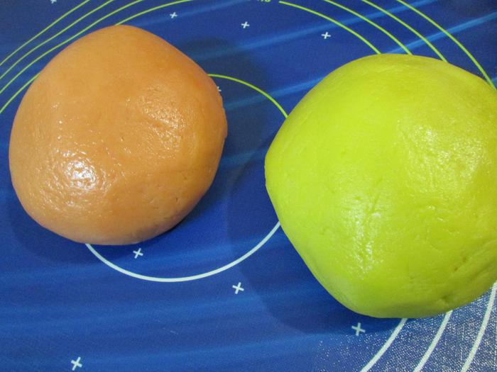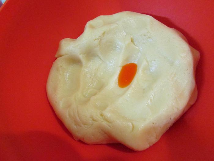 В одну часть добавить желтый краситель.