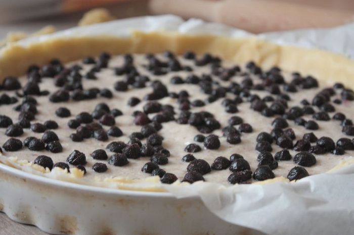 Аккуратно переложите банановую начинку и добавьте чернику, распределив ее равномерно по всей начинке. Выпекайте пирог при 180°С в течение 30 — 40 минут (следите за своей духовкой).