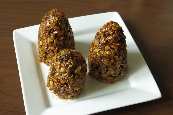 Представляю простой десерт — «Шишки-гранола» с арахисом и грецкими орехами, готовится быстро, новогоднее оформление создаст настроение праздника. Чуть присушенные хлопья с маслом грецкого ореха Biolio обогатят вкус сладости. Приятного аппетита!