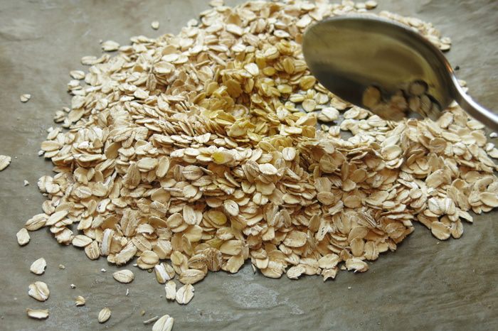 Соединяем хлопья с маслом, удобно все перемешивать на противне, застеленном пергаментов.