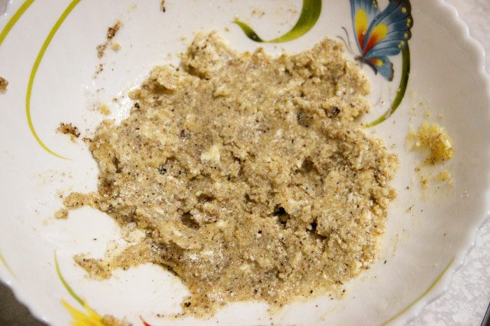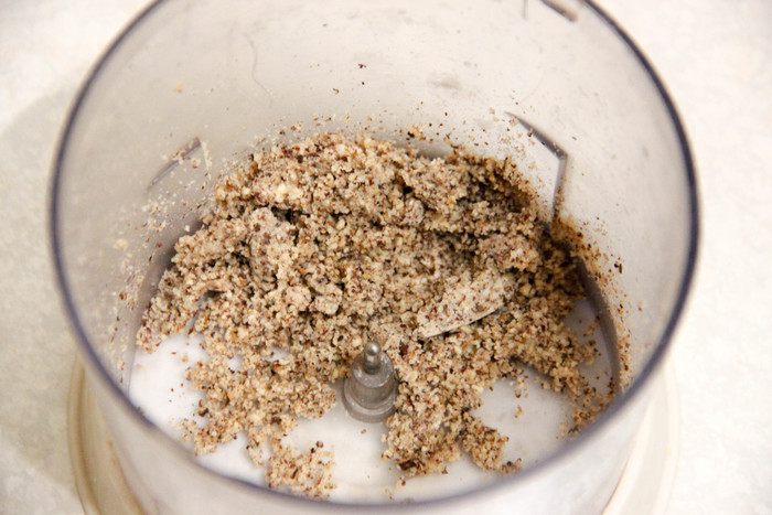 Фундук очищаем и перемалываем в крошку.