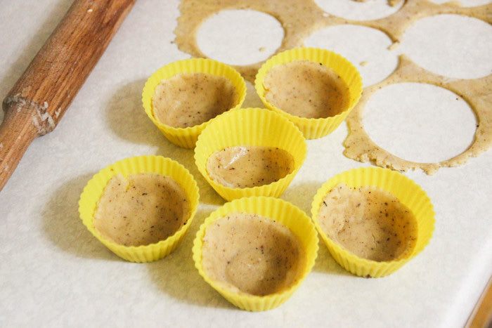 Выкладываем круги в формочки для кексов (у меня силиконовые), накалываем вилкой тесто и ставим в духовку на 10 минут при температуре 200°С.