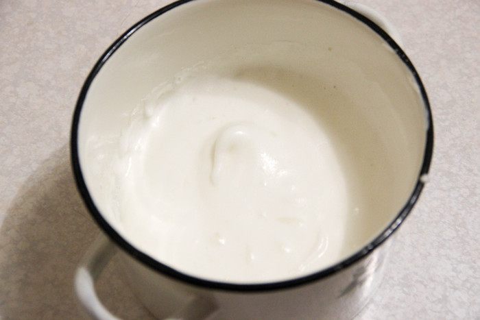 Вводим горячее варенье в белковую массу. Подготовленный желатин распускаем в микроволновке (20 секунд на высокой мощности хватит) и тоже добавляем к белкам. Продолжаем взбивать все несколько минут.