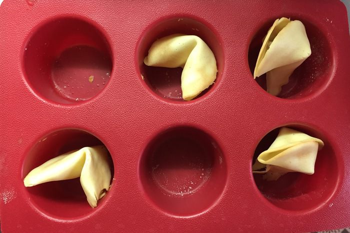 Сразу скажу: первый раз делайте только одно печенье. Во-первых, отладите процесс, во-вторых, поймете, сколько времени нужно для того, чтобы печенье пропеклось, а с другой стороны, вы потом успели его согнуть. Оно моментально твердеет. Следующие разы делайте не больше, чем по 3 печенья за раз, потому что у вас будет меньше двух минут на все про все. В общем, именно из-за этого такое гигантское время приготовления небольшого количества печений.