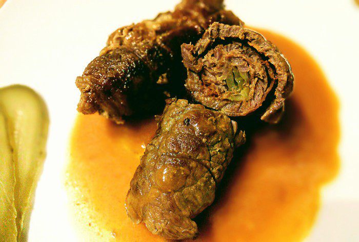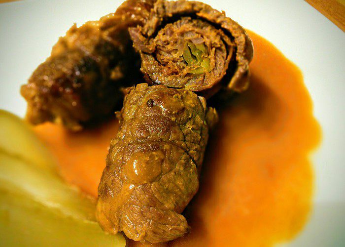 Готовить можно не только вкусно, но и красиво. Говяжьи ролады, по-нашему просто рулеты, блюдо интересное во всех отношениях. Настоящие ролады делаются из говяжьего мяса. Известно, что говядина — это твердое мясо, его надо долго готовить. Берешь говяжью вырезку, нарезаешь тонкие кусочки, каждый отбиваешь молотком. Потом отбитые кусочки мяса солишь, перчишь, а дальше по инструкции. Заинтересовала? Тогда прошу со мной на кухню!