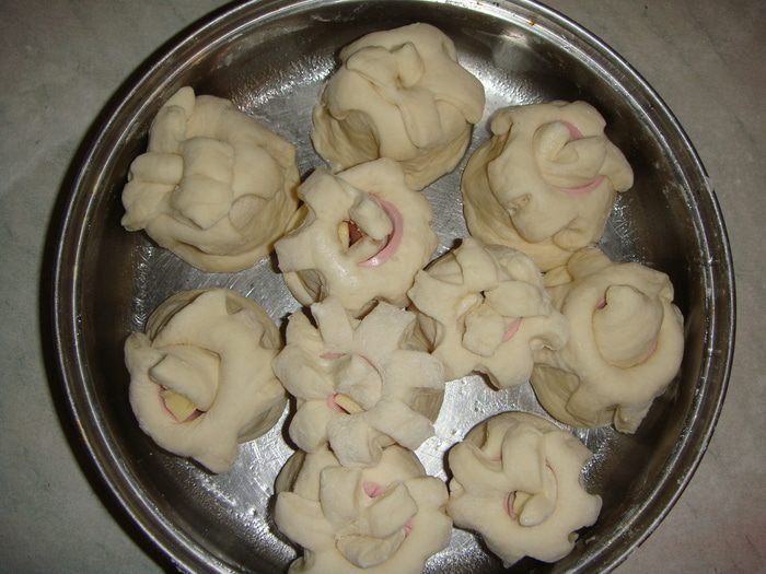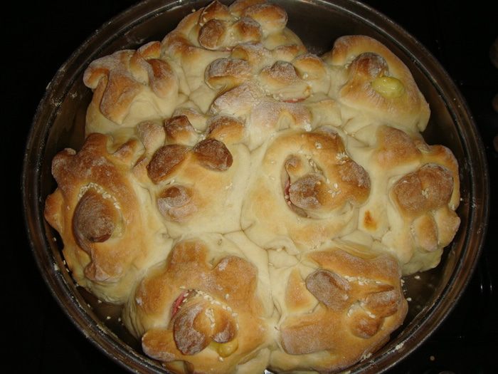 Пирог в форме цветов. Резать его не надо. Отламываете цветочек и кушаете, получается что-то вроде бутерброда.