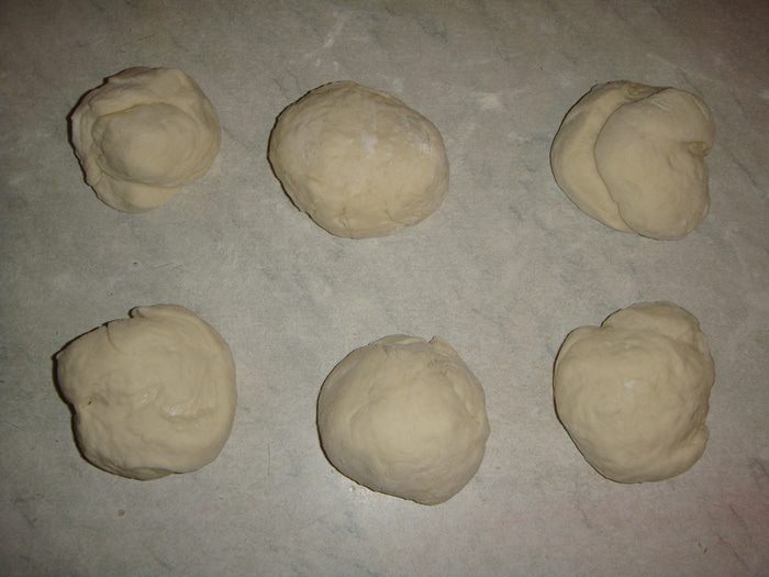 Тесто из одного пакета разделить на 6 равных частей и скатать в шарики.