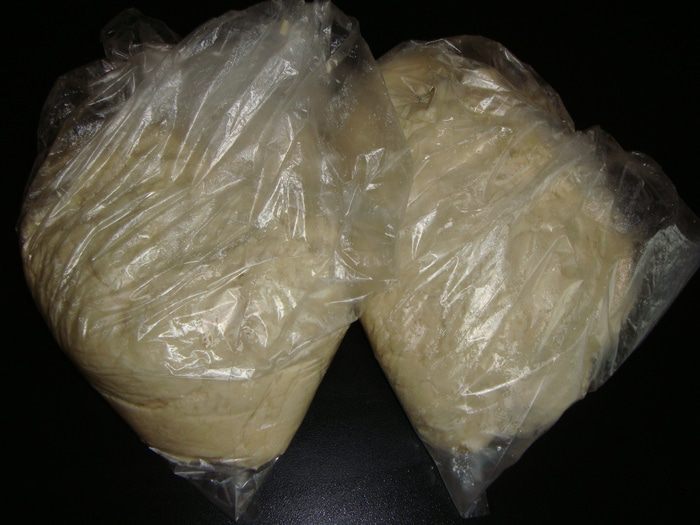 Тесто разделить на 2 части, положить в пакеты и убрать в холодильник на 2 — 3 часа (можно и дольше).
