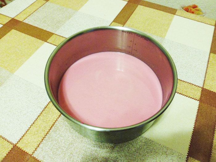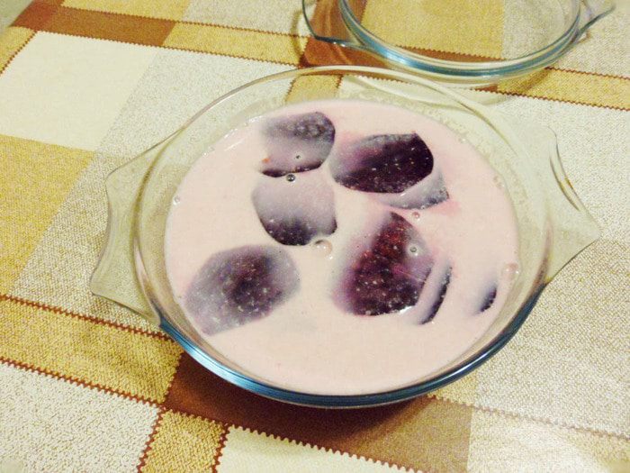 Далее в молоко добавляем мед, после его полного растворения вливаем катык (можно ряженку), затем добавляем кружочки свеклы. Все хорошенько перемешиваем.