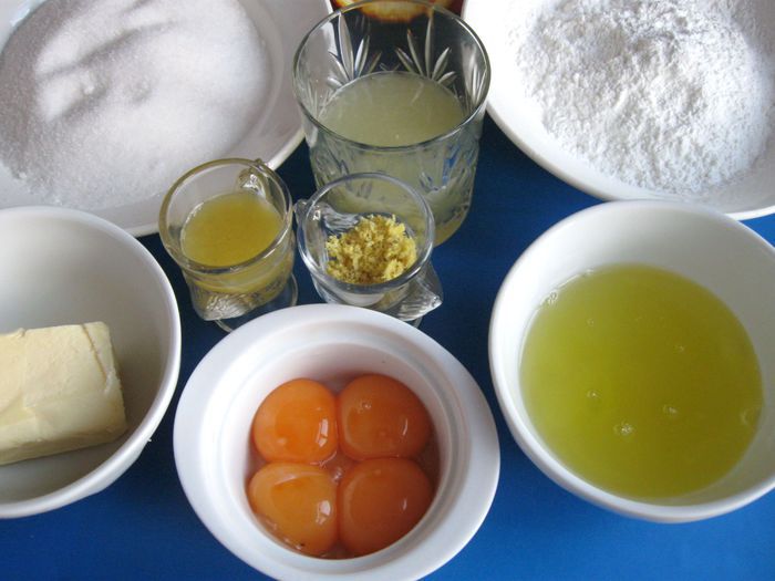 Натереть на мелкой терке цедру лимона. Выдавить сок лимона и апельсина. Отделить белки от желтков.