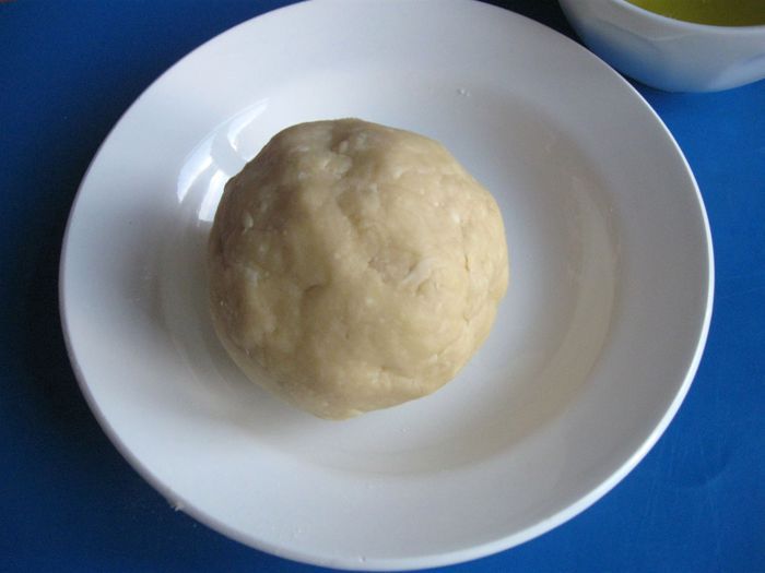 Смешать все ингредиенты для теста. Вода должна быть очень холодной. Оформить тесто в шар. Завернуть в пленку. Положить в холодильник на 30 минут.