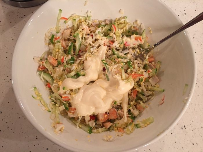 Добавляем майонез и перемешиваем.