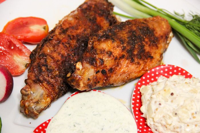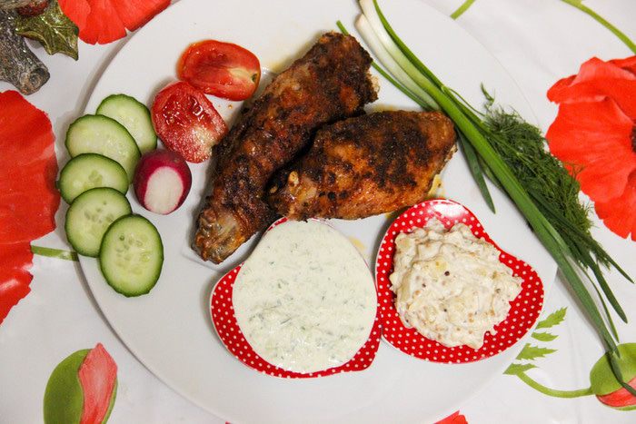 Крылья отправить в духовку примерно на час при температуре 180°С. Когда пройдут первые полчаса, крылья перевернуть, чтобы они пропеклись равномерно. Время, температуру и режим запекания можно регулировать, исходя из особенностей своей духовки. Я, как правило, запекаю на режиме «гриль», чтобы получилась хрустящая корочка.