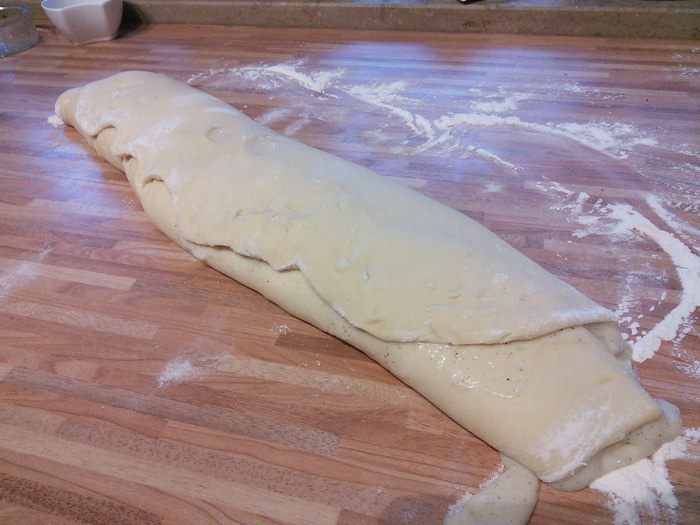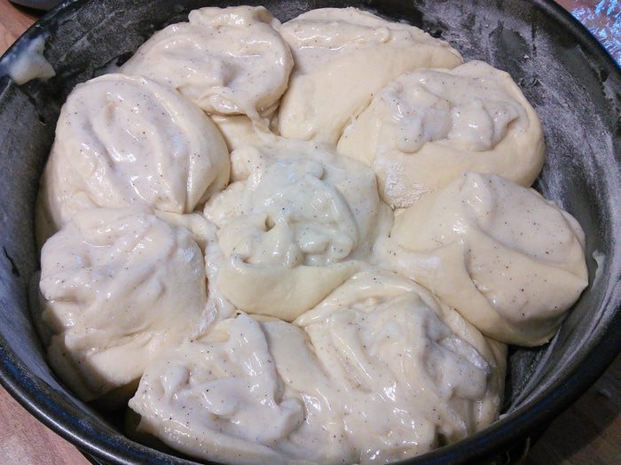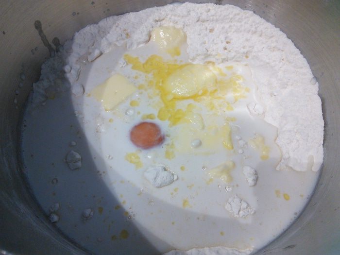 Если вы уверены в дрожжах, то можно ускорить процесс, сложив все ингредиенты в чашу комбайна и замесить тесто. В обратном случае убедитесь, что дрожжи рабочие, залив их теплым молоком с сахаром, и только тогда добавляйте к муке и остальным ингредиентам.