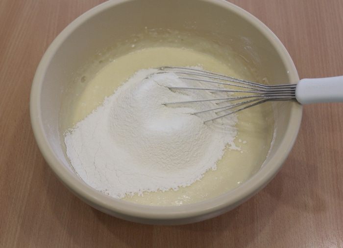 Просеять муку с разрыхлителем.