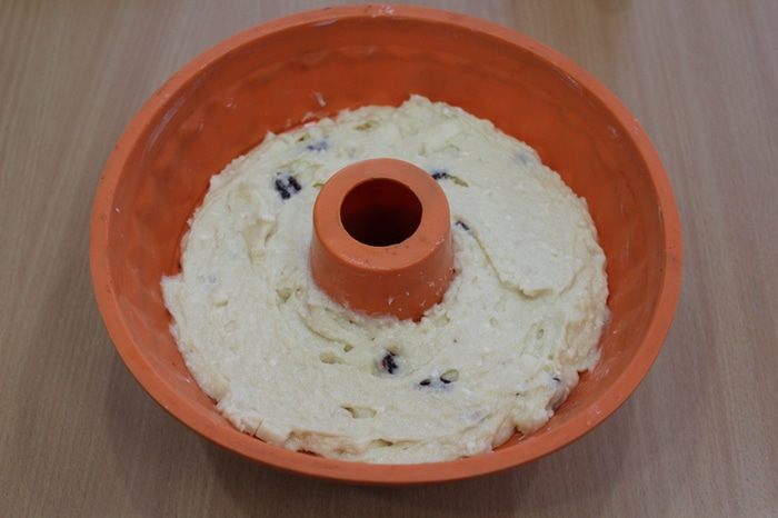 Смазать форму маслом, выложить в нее тесто.