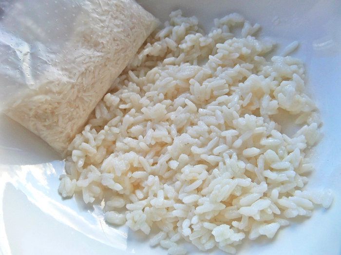 Отварить заранее пакетик риса.
