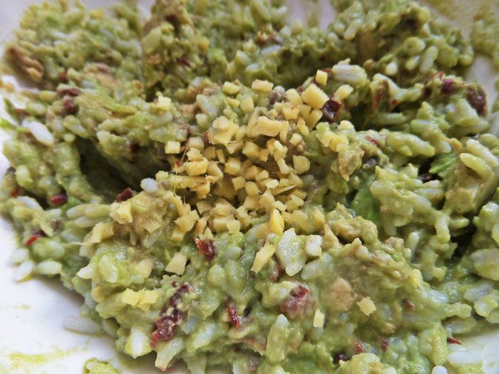 Проведем репетицию закусок для праздничного стола, приготовим такую пикантную намазку. Придумала по своему вкусу на основе авокадо, риса и творога. Надеюсь, и вам понравится! Из добавок можете оставить что-то одно: или имбирь или хрен, если не сильно любите пикантное. Мясо можно заменить обжаренным до хруста беконом.