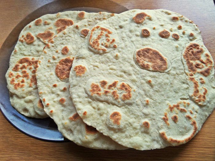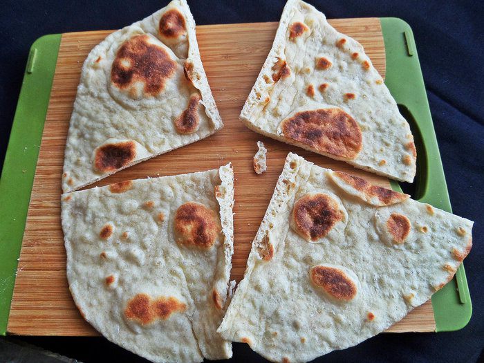 Лепешку разделить на 4 части.