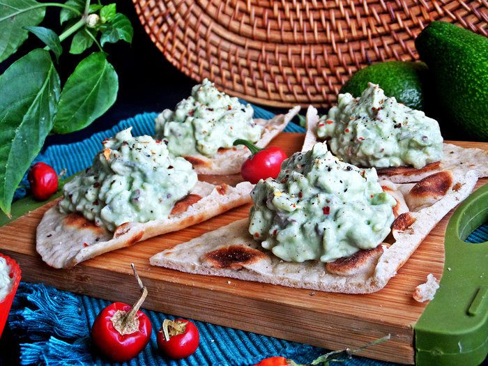 У меня оставалась домашняя лепешка, можно на ней и подать, также отлично будет смотреться на крекерах или в несладких корзинках. На крайний случай подаем на поджаренном хлебе!