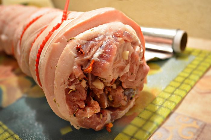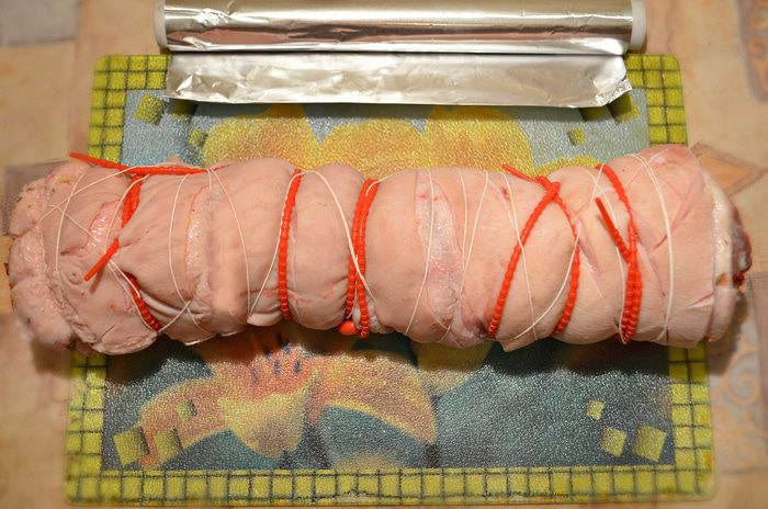 Через сутки выложите поркетту на противень и запекайте в разогретой до 150ºС — 160ºС духовке около 3 часов.