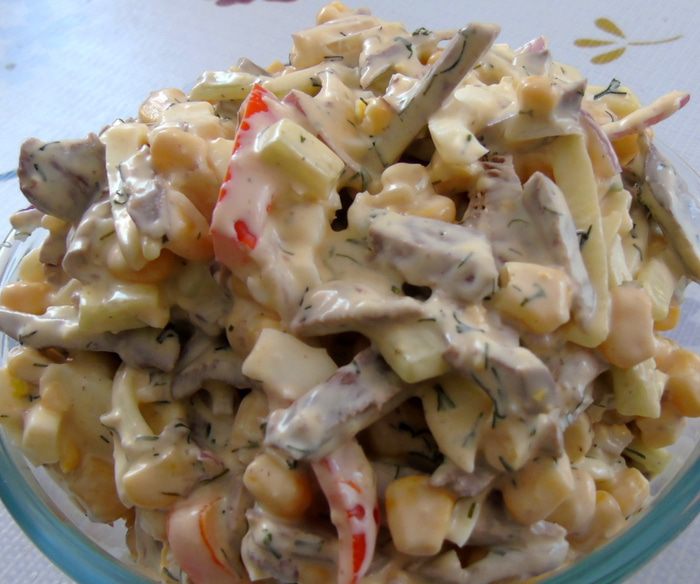 Сытный, вкусный салат. Вроде обычный набор продуктов, но с этой заправкой работает просто на ура.