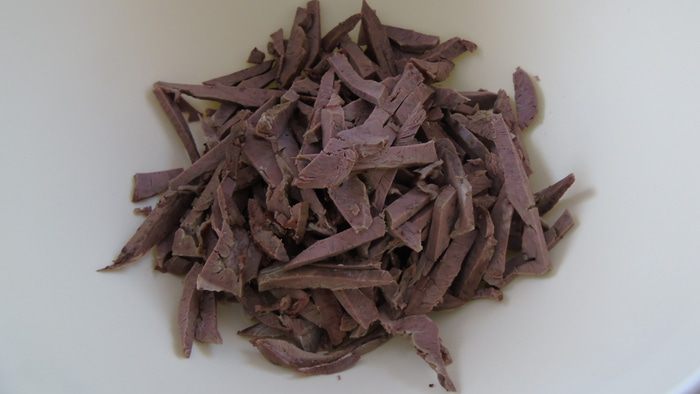 Нарезаем сердце соломкой.