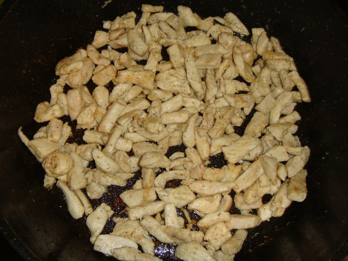 Выложить остывшую курицу.