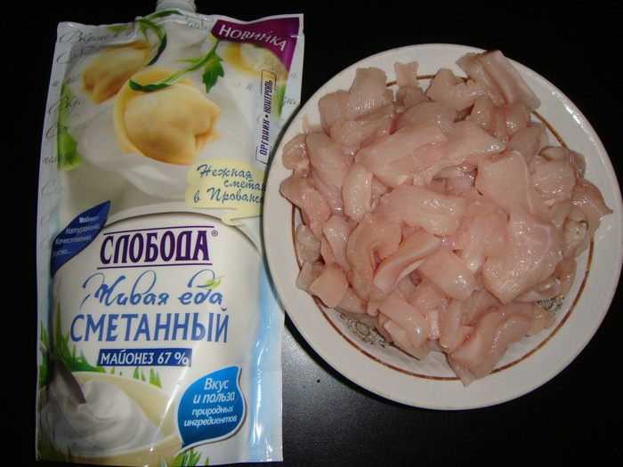 Заправить майонезом Сметанный ТМ «Слобода».