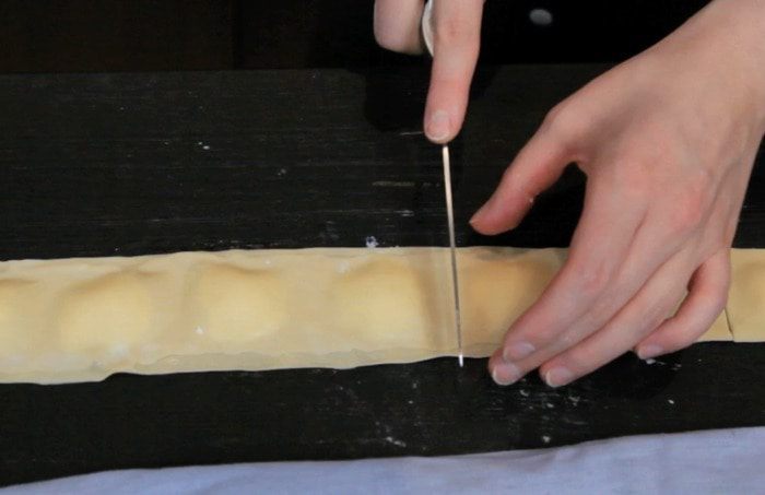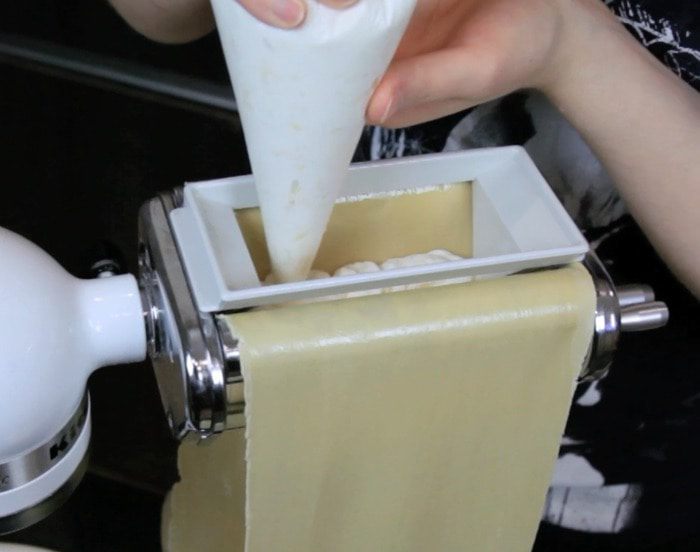Далее я использую специальную насадку, которая сама формирует равиоли.