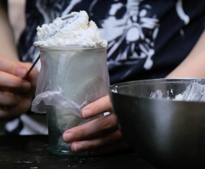 Переложить начинку в кондитерский мешок и убрать в холодильник.