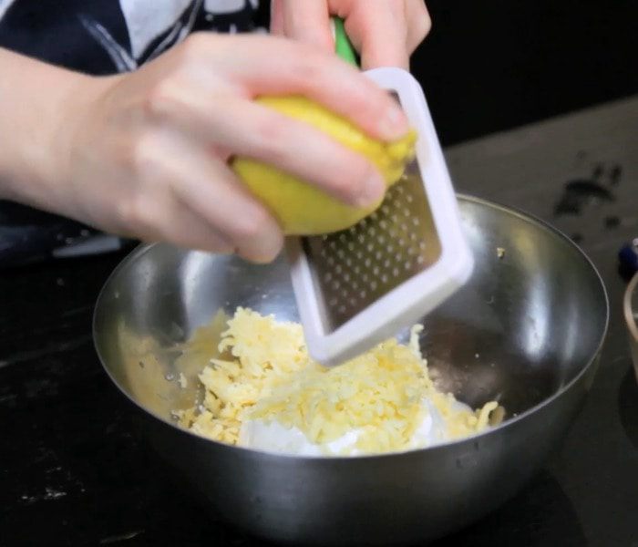 Смешать рикотту с соком двух лимонов и цедрой трех. Затем добавить сыр, соль и перец.