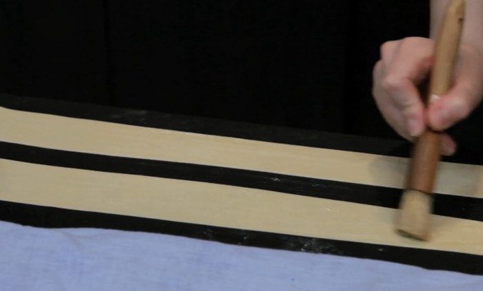 Если насадки нет, то подготавливаем 2 небольшие полоски и смазываем их яйцом.
