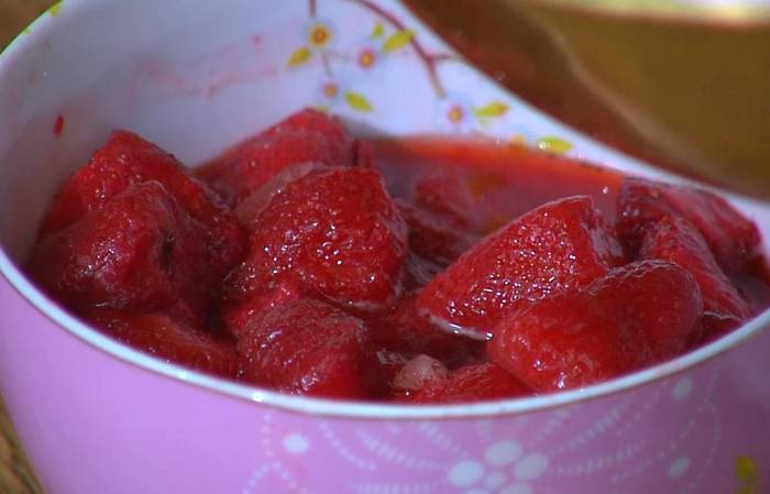 Клубнику предварительно разморозить.